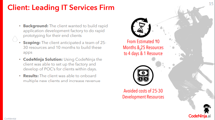 The client built a rapid application development factory to do rapid prototyping for their end clients